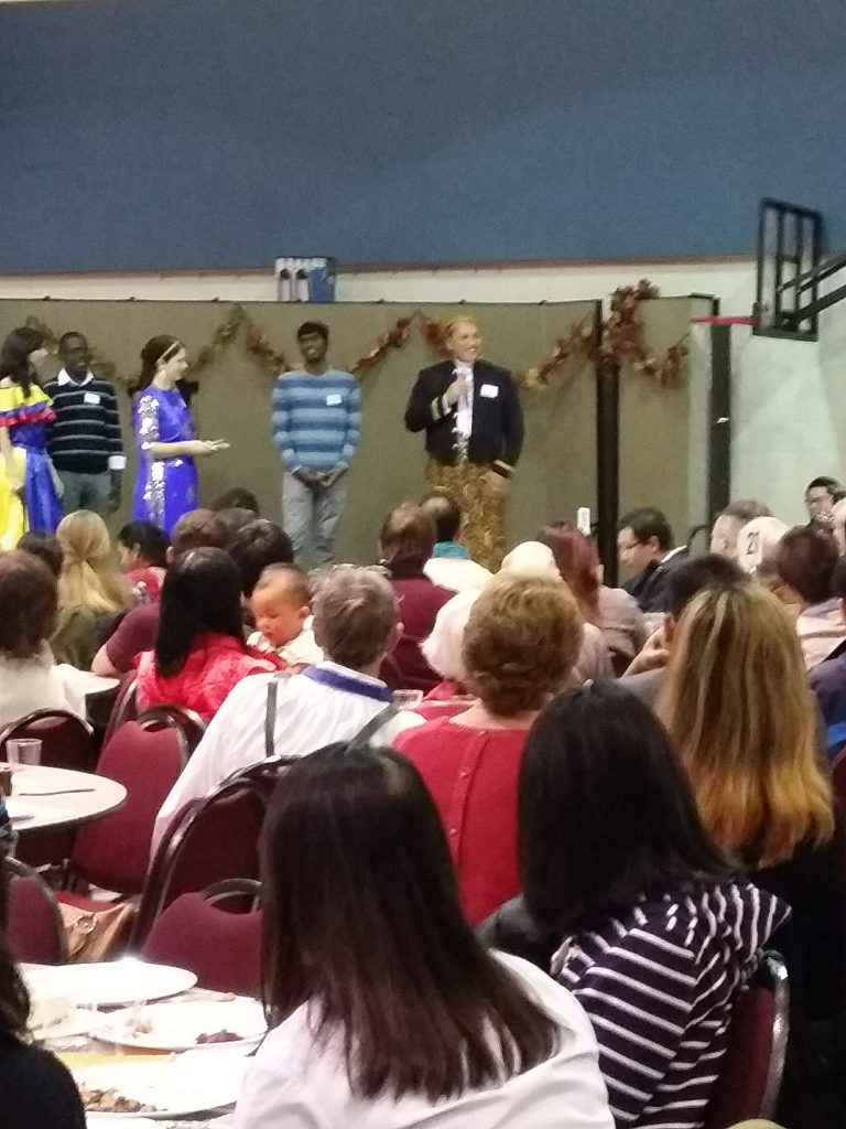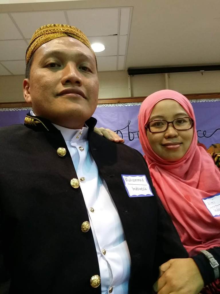 Kami biasanya mengikuti pesta Thanksgiving Day yang diadakan organisasi Global Student Friendship. Acara yang dihadiri oleh keluarga Amerika dan mahasiswa internasional itu dikemas seperti dinner party. Ada meja-meja bundar dengan sejumlah kursi di sekelilingnya. Peserta yang hadir memakai baju formal atau pakaian khas dari negara masing-masing. Di pintu masuk ada petugas yang kemudian mengantarkan kami ke meja masing-masing. Di awal acara dijelaskan sejarah Thanksgiving dilanjutkan dengan menikmati aneka hidangan khas Thanksgiving. Lalu peserta bisa menikmati aneka hiburan. Anak-anak berada di ruangan lain untuk membuat aneka kerajinan dan bermain. Di akhir acara ada pembagian hadiah dan pemilihan the best outfit atau peserta dengan baju paling menarik. Mas Sigit pernah sekali mendapat hadiah saat memakai baju beskap komplit.