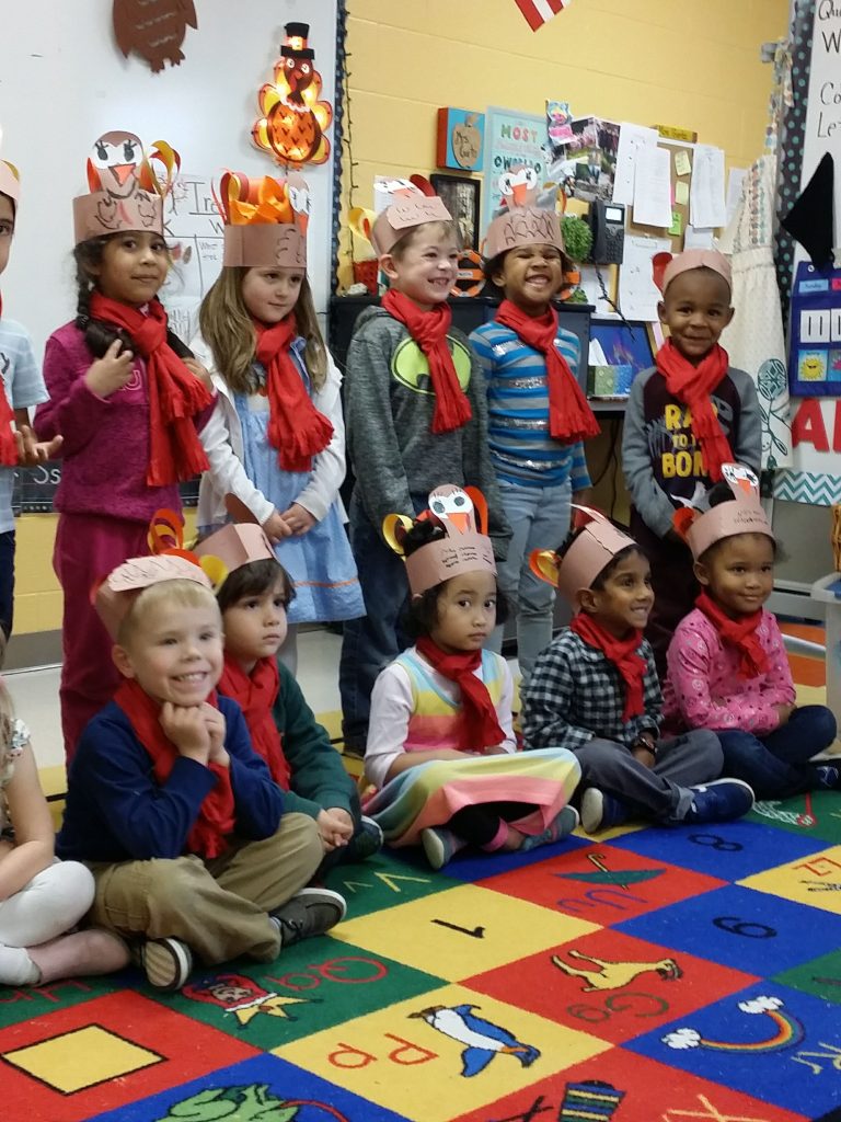 Sekolah-sekolah juga memasukkan topik thanksgiving dalam proses pembelajaran. Suatu ketika Sofie pernah pulang dengan membawa selembar kertas berisi daftar hal-hal yang dia syukuri. Di sekolahnya Lili saat Pre-K (pre kindergarden atau semacam playgroup di Indonesia) mengadakan acara khusus dengan mengundang orangtua hadir di kelas. Di dalam kelas diatur sedemikian rupa sehingga ada semacam area panggung di depan. Anak-anak berbaris rapi menyanyikan lagu “Thanksgiving is coming” serta tarian jenaka “Halo Mr Turkey How Are You?”