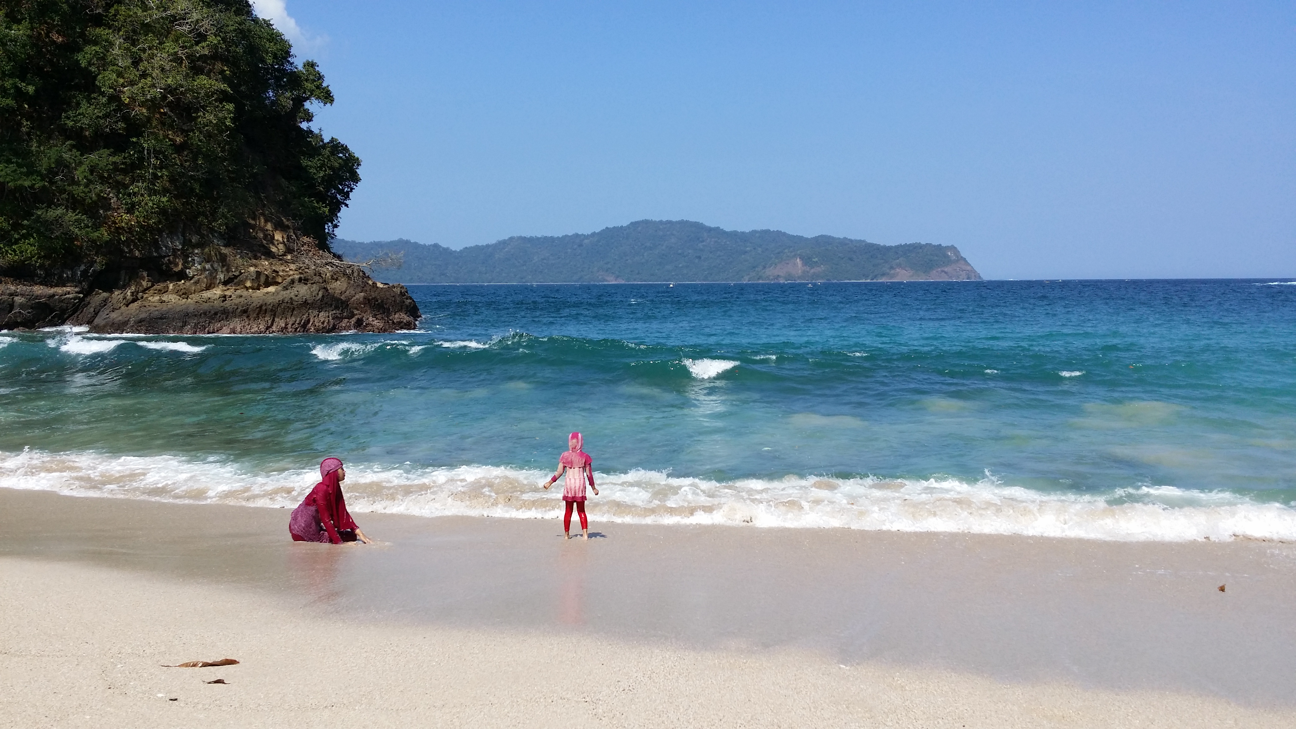 Kali ini, saya dan keluarga menjelajahi destinasi tersembunyi. Butuh usaha yang tidak ringan untuk mencapainya, namun sepadan dengan eksotisme pemandangannya. Tempat itu adalah Teluk Hijau atau masyarakat sekitar menyebutnya Teluk Ijo.
