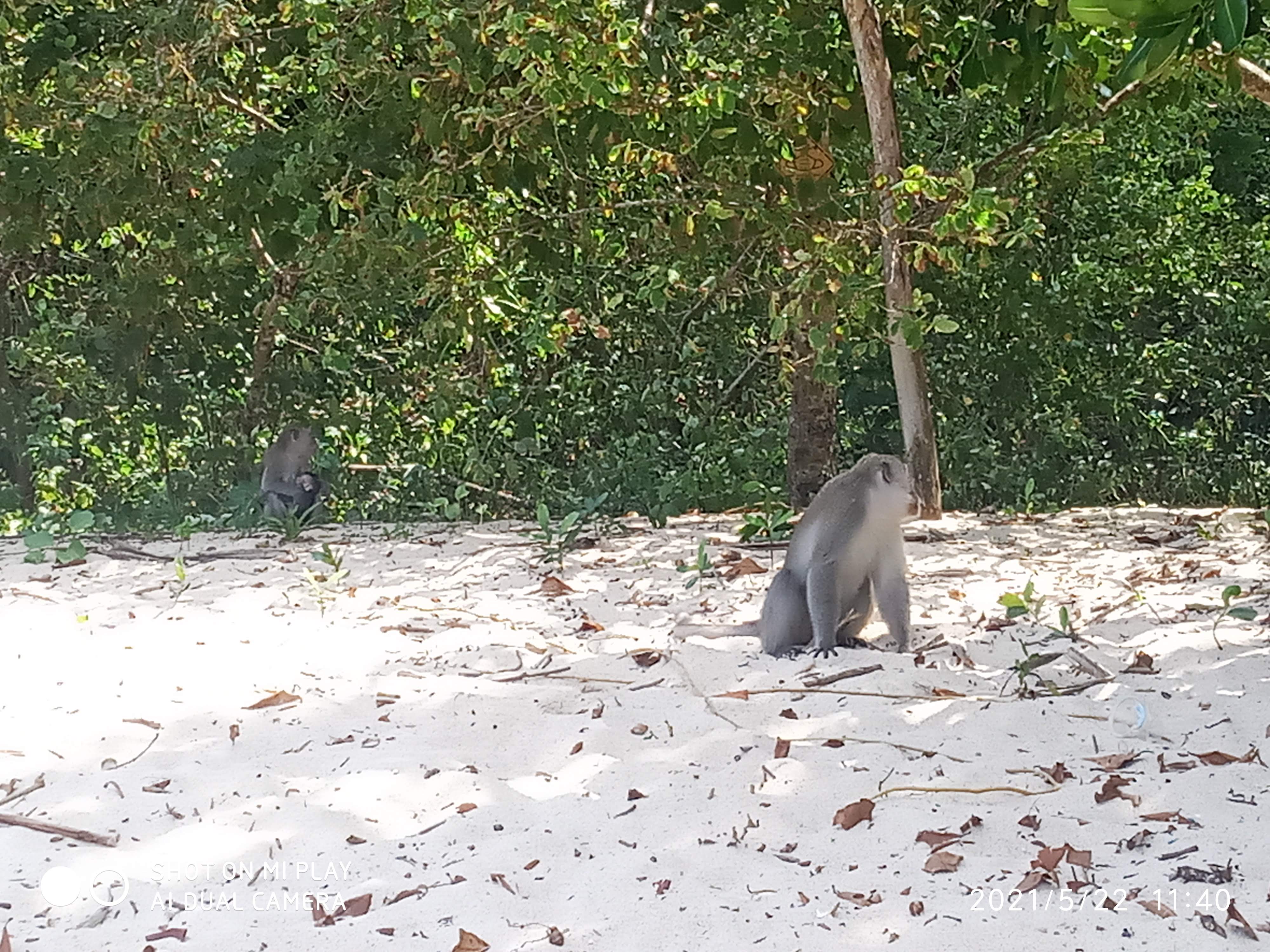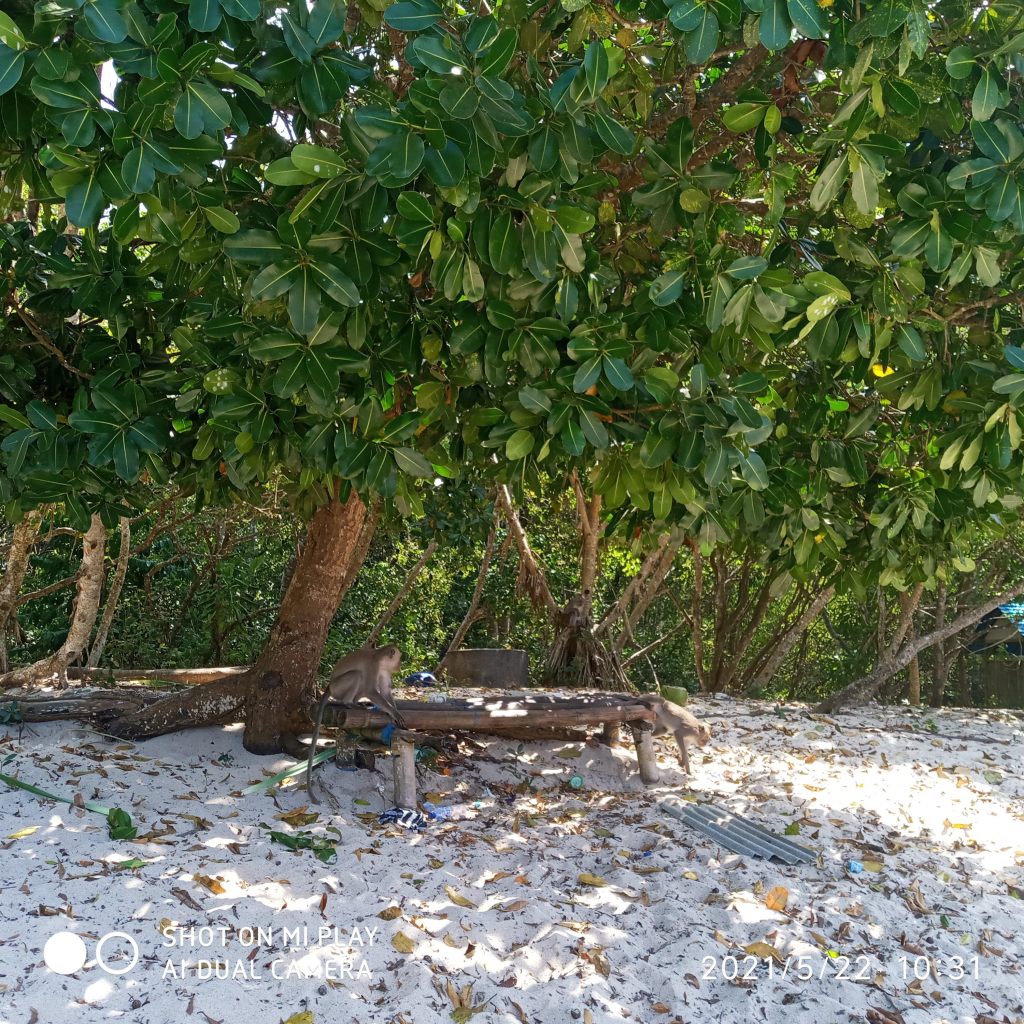 Satu lagi yang sangat penting dan mesti diwaspadai. Kawanan MONYET. Beberapa menit setelah kami tiba di pulau, mereka sudah menguasai bangku dan memandang kami penuh minat. Mas Eko, nelayan yang mengantar kami sudah berpesan, semua makanan harus disimpan rapi di dalam tas tertutup. Jangan meninggalkan tas jauh dari jangkauan, apalagi menggelar makanan. Ada banyak monyet usil dan agresif.