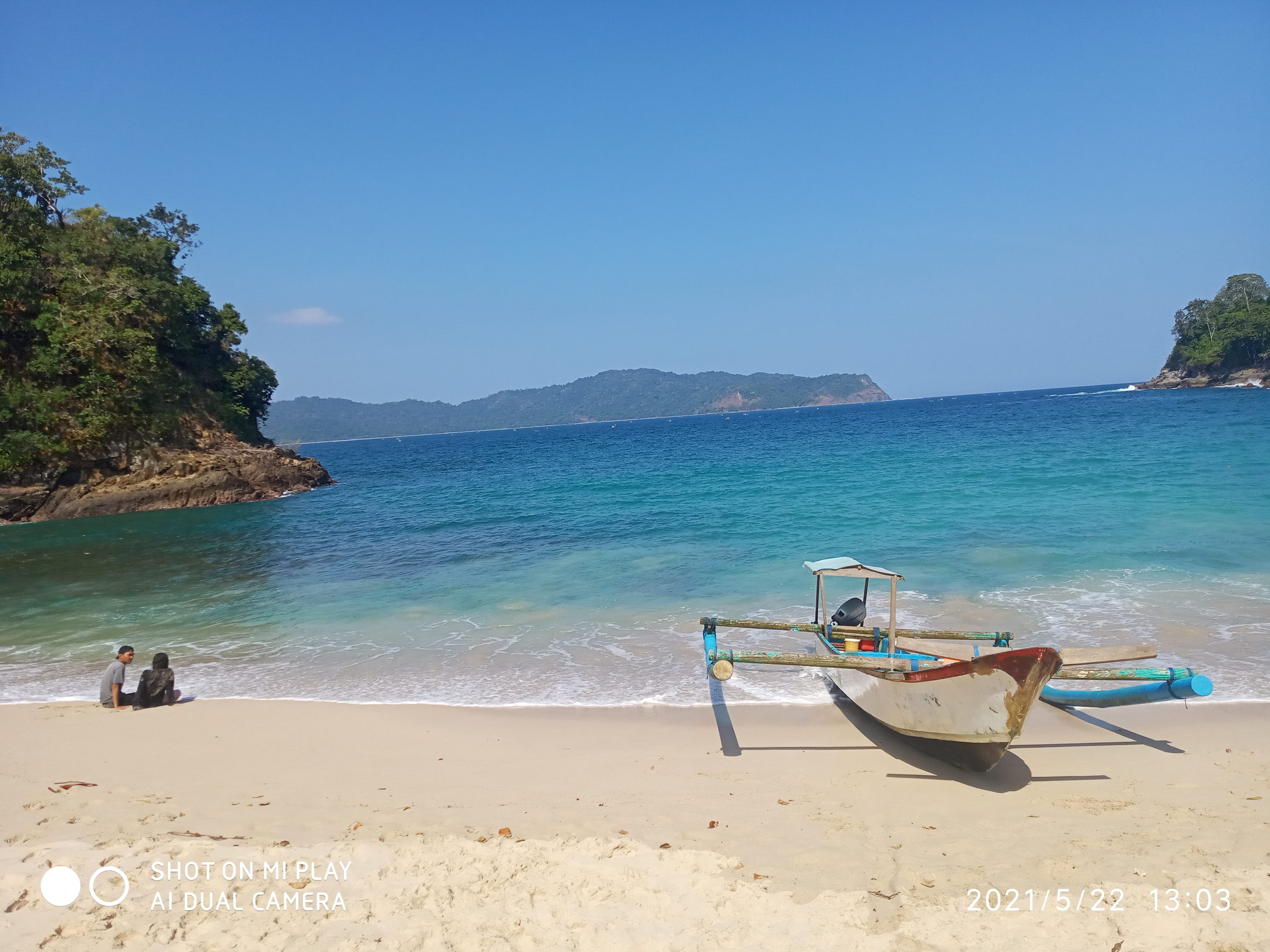 Menjelang jam dua belas siang, Pak Supri yang pertama kali menawari kami perahu saat di Pantai Rajegwesi datang bersama dua perahu yang penuh berisi rombongan biker. Saat perahu kembali ke Rajegwesi, Pak Supri tinggal. Beliau duduk di samping kami dan mengobrol. Beliau bapak 3 anak laki-laki yang semuanya berprofesi sebagai nelayan serta menjual jasa mengantar wisatawan ke Teluk Ijo. Mas Eko yang tadi menganatr kami adalah putra ketiga beliau. Sebelum pandemi, setiap pekan mereka bisa dapat, minimal Rp1.000.000 dari jasa sewa perahu. Tapi setelah pandemi, dapat seperempatnya saja sudah beruntung.