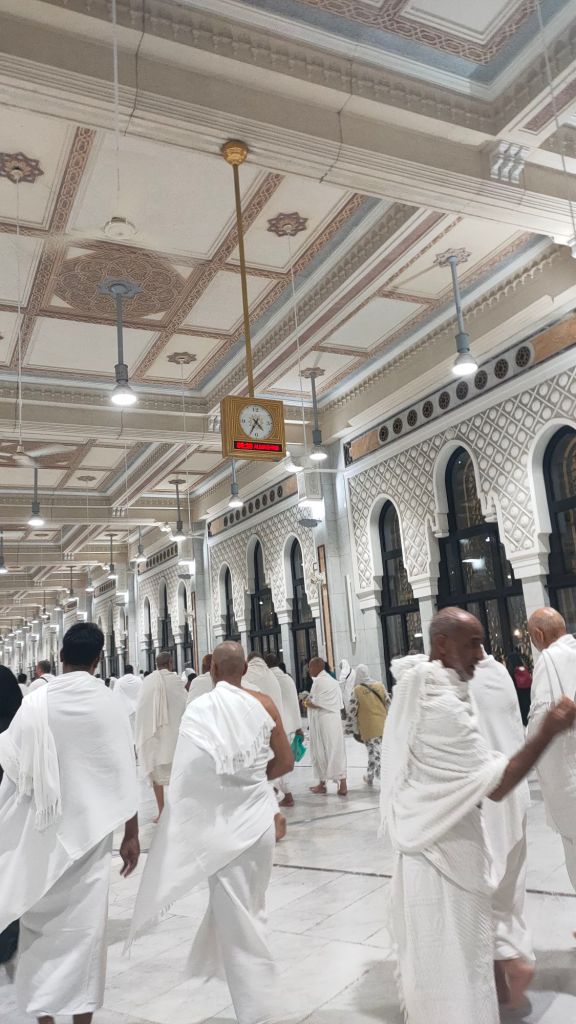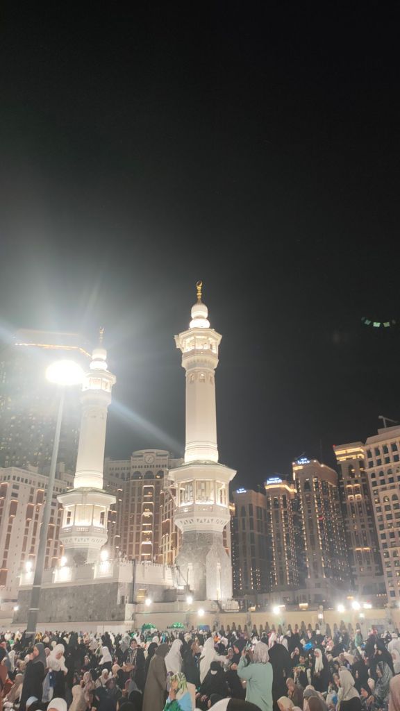 Saat itu jam 02.00 dini hari namun Al Haram tampak ramai. Lautan manusia berbaju putih-putih. Para petugas yang berbaju loreng menjaga pintu-pintu masuk Al Haram. Begitu melihat Al Haram, saya tidak bisa melukiskan perasaan. Haru, bahagia, ditimpali rasa sedikit tak percaya bahwa kami bisa sampai di tanah ini. Masya Allah, hanya dengan kuasa-Nya lah kami bisa sampai di sini.
