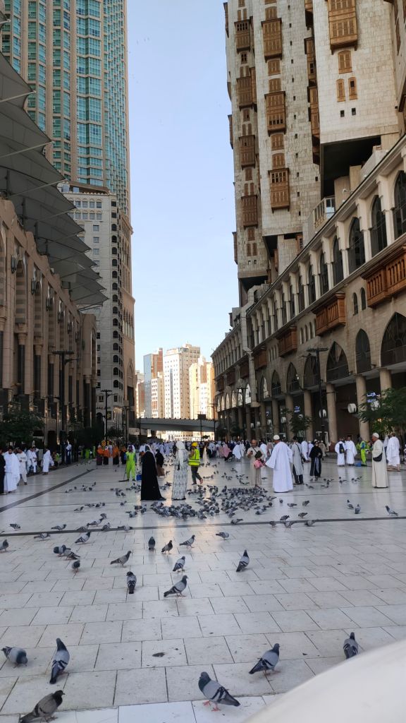 Usai shalat Subuh kami berjalan-jalan di sekitar Al Haram, mengenali pintu-pintunya dan menikmati suasana. Masya Allah, gambar masjid yang biasanya saya lihat di foto atau video sekarang terpampang di depan mata. Orang-orang lalu lalang, memakai pakaian yang umumnya sama, baju ihram putih-putih dan gamis bagi para wanita. Kulit mereka berbeda warna, paras wajahnya juga mewakili banyak ras/suku bangsa tapi identitas kami semua SAMA yaitu seorang Muslim yang ingin menyempurnakan ibadah dengan umrah/haji kecil.